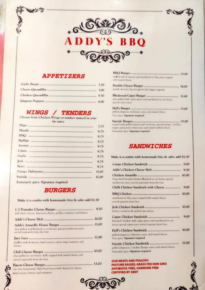 ADDY'S BBQ Menu
