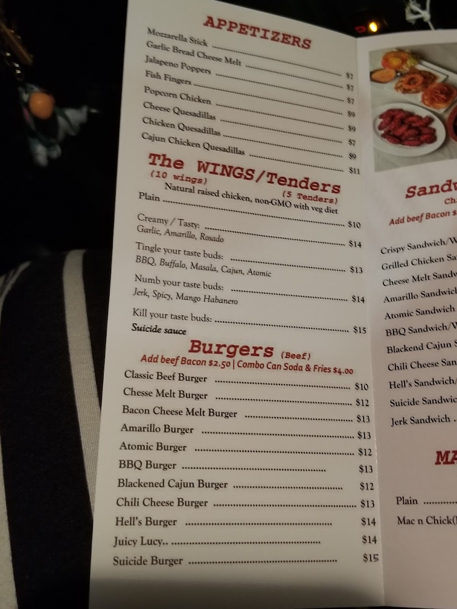 The menu features a variety of barbecue and halal dishes, structured into several main categories to suit different preferences and meal occasions. Visitors can find a diverse selection of wings and tenders with multiple flavor options ranging from plain to spicy varieties such as Masala, Garlic, Buffalo, and the extremely spicy Suicide wings, which require a signature. These are available at varying price points according to spice level and preparation style.